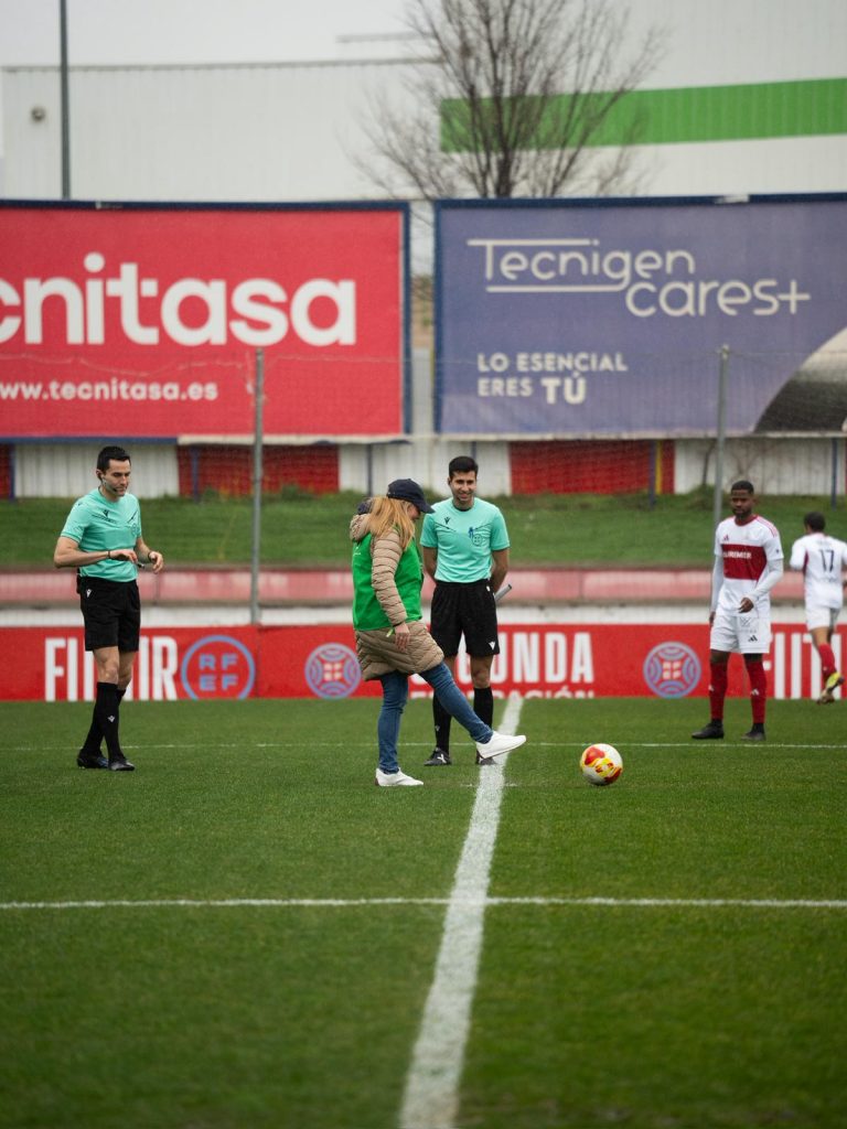 Destacar el saque de honor realizado por la asociación contra el cáncer y la entega de la camiseta conmemorativa de los 100 partidos de Mari González.