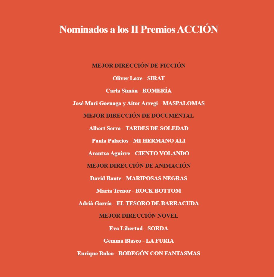 En esta edición han podido concurrir las obras producidas en España y estrenadas entre el 1 de noviembre de 2024 y el 15 de octubre de 2025. Tras una primera fase de votación, en la que los socios y socias de ACCIÓN propusieron hasta tres títulos por categoría, las más votadas conforman ahora la lista oficial de nominadas.
